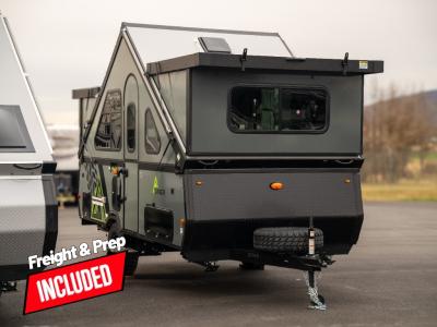 The Evolution A-frame camper by Aliner is coming to you with residential features and solid construction materials. You'll find a slate gray fiberglass exterior, aluminum wheels, and a high wind lift assist for added strength. There are also LED running lights, exterior baggage doors, and four stabilizer jacks to help keep your camper secure. You will also appreciate the keyless entry, dual LP tanks with a cover, and the 200-watt solar panel on the front dormer for some off-grid power. The lift kit and 15" off-road tires add 3" to the height, allowing you to explore more roads, and you'll find many interior comforts to make you feel right at home!