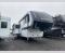 If you're looking for a feature-packed fifth wheel, this is the one! The rear multipurpose flex space can be used as an office/butler's pantry/laundry room/mudroom! There is an adjustable-height desk, storage space, plus washer and dryer prep. One of the dual entry doors is even found here for added convenience. The combined middle kitchen and living room includes dual opposing slides, a tri-fold sofa, theater seating, and a sliding desk/dining table. There is also a televator and fireplace, kitchen island with pet bowls, and an 84" pantry with adjustable shelving to name a few more features. A full bath towards the front includes a 30" x 42" shower, and the front private bedroom will feel just like home with its king bed slide out. There is also a sliding dresser top with hidden storage, bedside shelves, a front wardrobe, and washer and dryer prep here also!